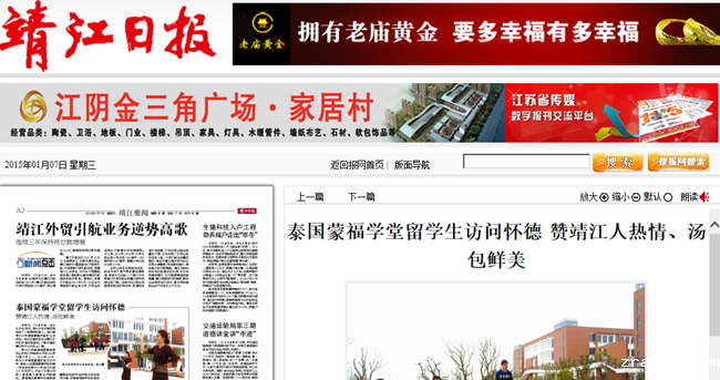 本报讯 (记者刘敏 通讯员阴祥)昨天,188金宝搏手机网页迎来了一批特殊的客人。他们是常州大学泰国蒙福学堂的36名师生。他们应邀来到迁址靖江办学的188BETapp下载参观,了解怀德和靖江的文化与风土人情。