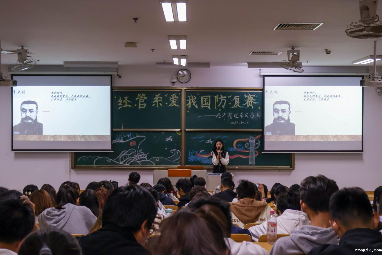 为了增强同学们的国防观念,提高同学们爱国防、强国防的意识。10月12日晚,经济管理系于J101成功举办“爱我国防”演讲比赛,经管系团总支书记闻逸铮、经管系辅导员缪嘉炜、朱伯媛、梁海丽出席,经管系广大学生积极参与。