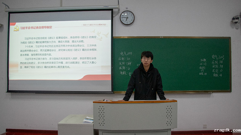 各班团支书通过PPT演示,播放相关视频,介绍了党的十九届五中全会会议内容,深度解读了会议的精神及核心要义。党的十九届五中全会统筹中华民族伟大复兴战略全局和世界百年未有之大变局,着眼全面建设社会主义现代化国家新征程作出一系列重大政治判断和重要战略部署,为今后五年乃至更长时期我国经济社会发展提供了行动指南和战略指引。