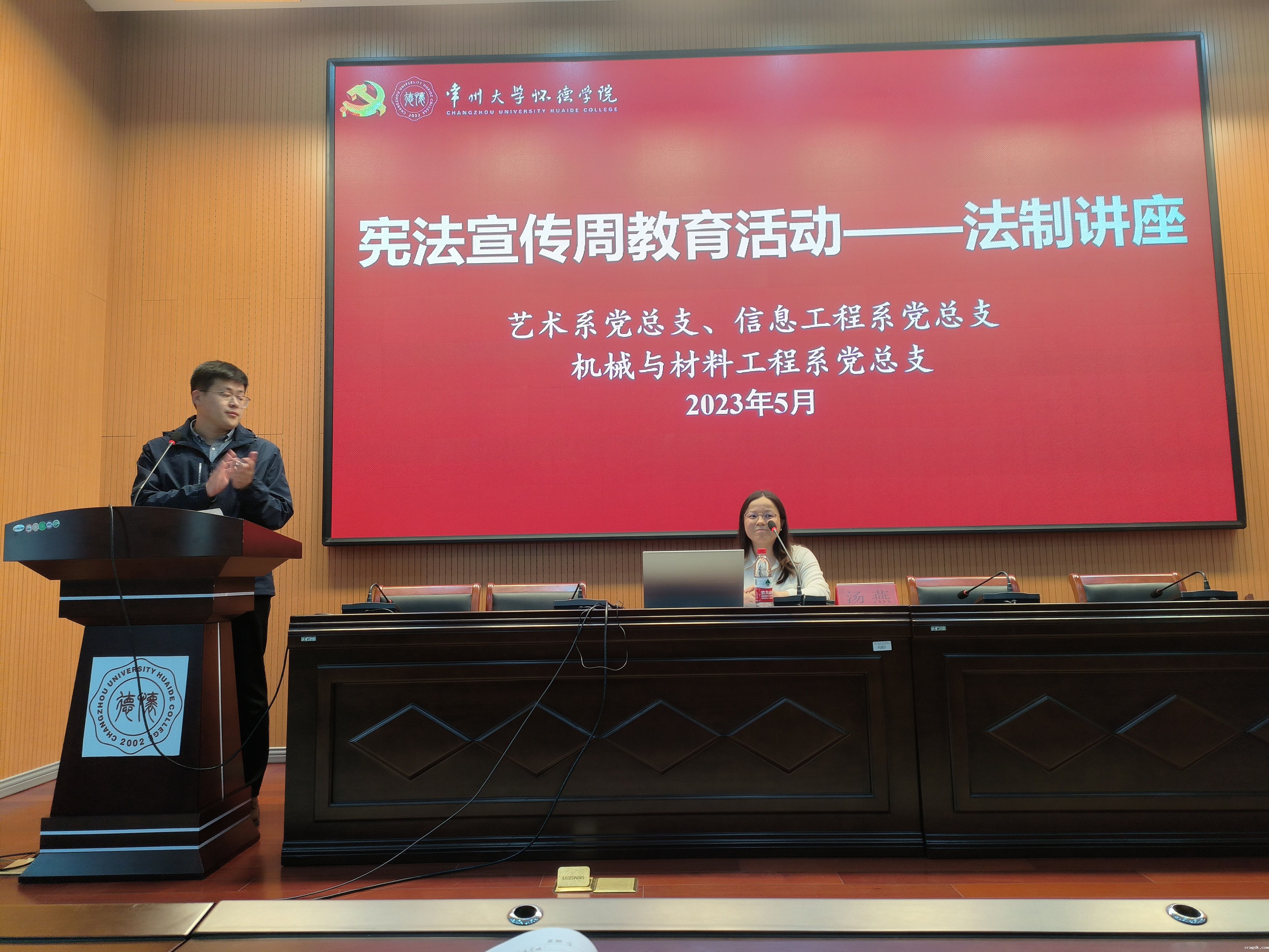为深入学习贯彻党的二十大精神和习近平法治思想,进一步加强大学生法治教育,5月12日,我校邀请了江苏硕扬律师事务所汤燕律师,顺利开展“宪法宣传周”法治讲座,讲座由机械与材料工程系党总支副书记孙科举主持,信息系、机材系和艺术系学生参加。